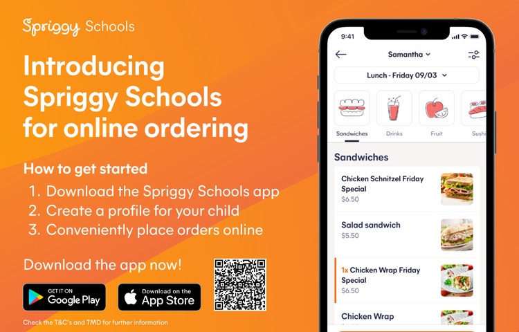 Our school has a canteen that operates 3 days per week. Online ordering can be done by downloading the spriggy app:
